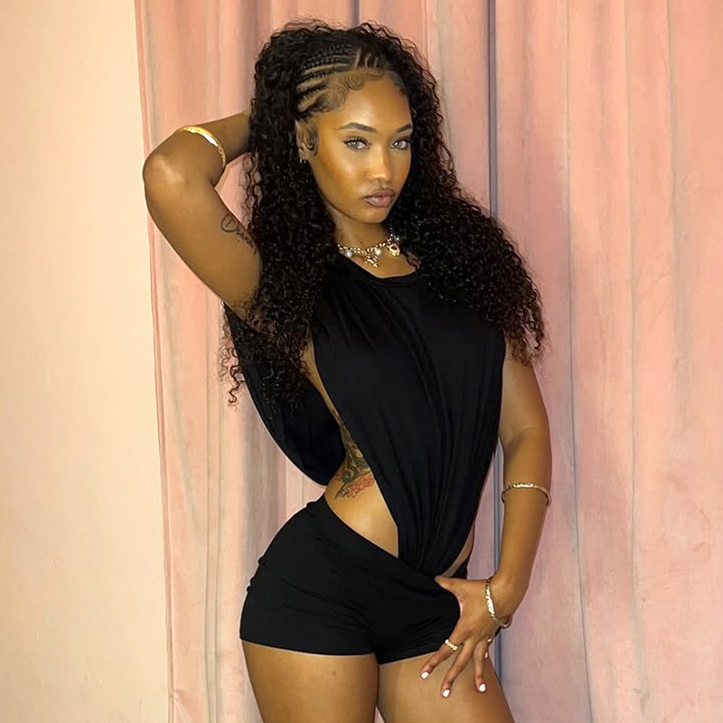 Gtpdpllt Black 2 Piece Set Sides Hollow Sleeveless Bodysuit Top and Shorts Club Wear Sexy Summer Baddie Outfits 2025
