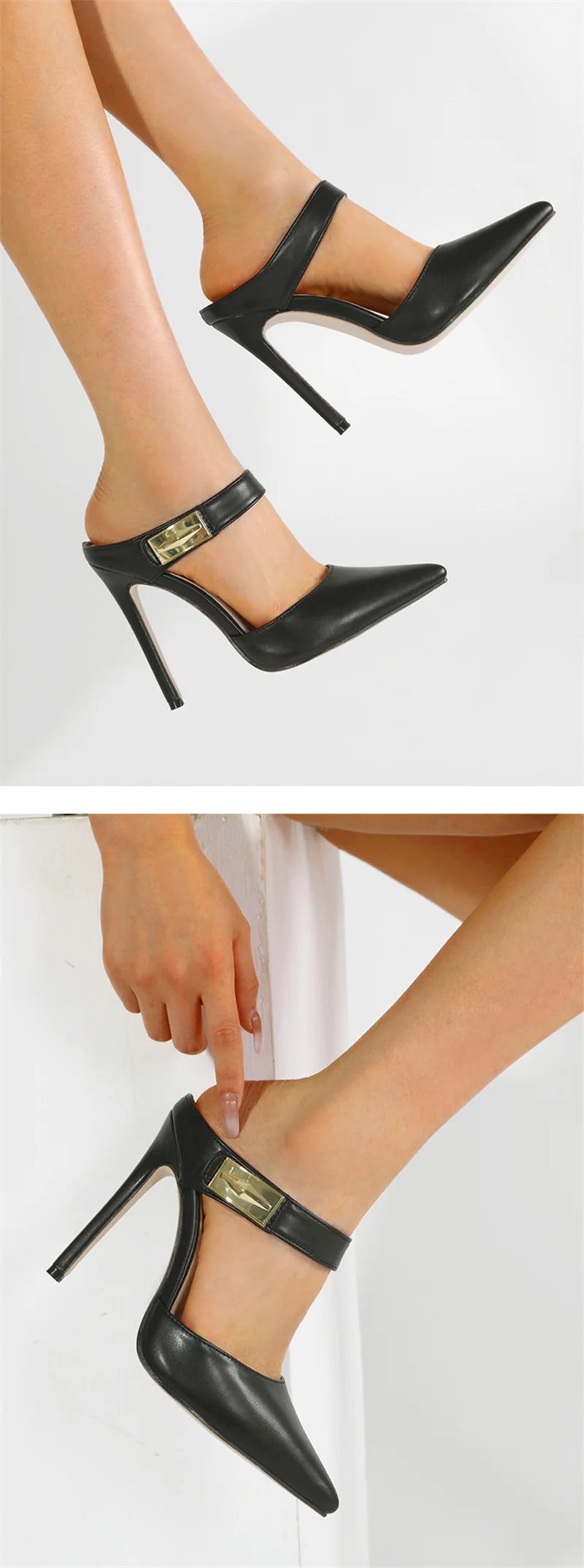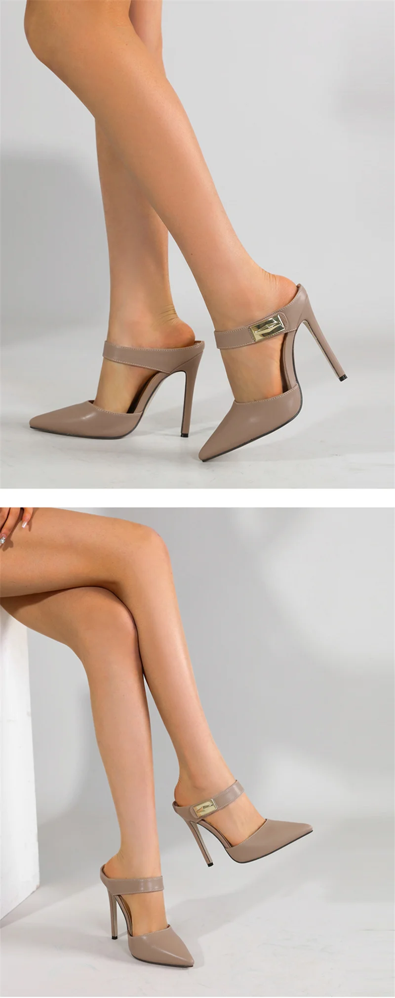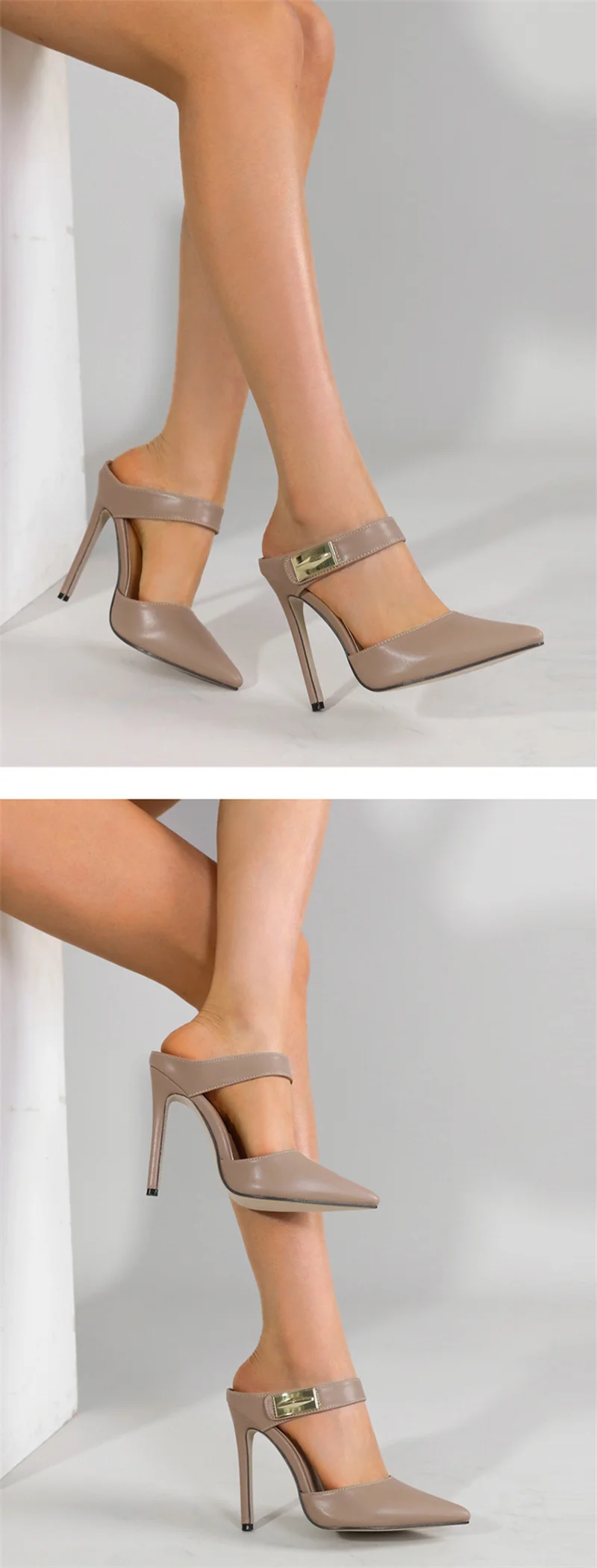 Hlieny Street Style Pointed Toe Quality Patent Leather Women Pumps Sexy Stripper Slipper Ladies Thin High Heels Sandals Shoes