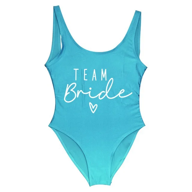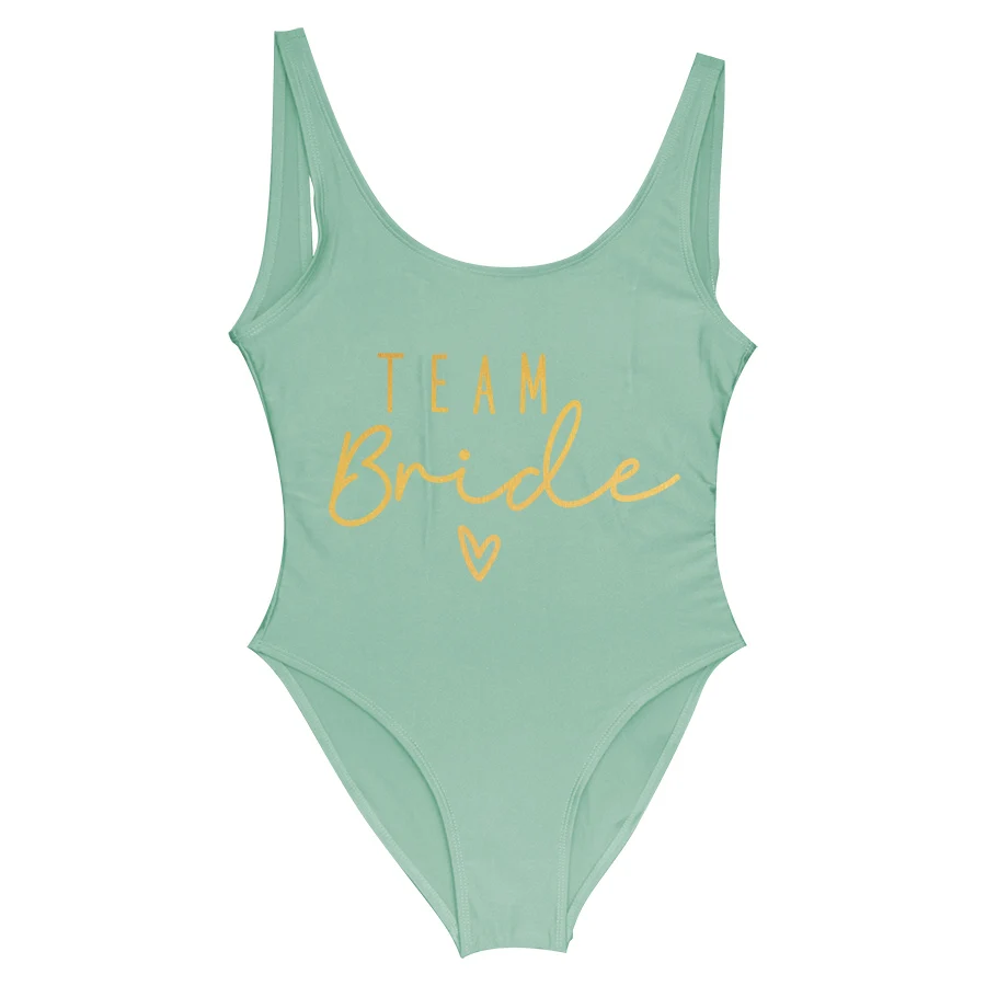 S-3XL Gold Print Team Bride One-Piece Swimsuit Squad Women Swimwear Sexy Padded Bachelorette Party Bathing Suit Summer Beachwear