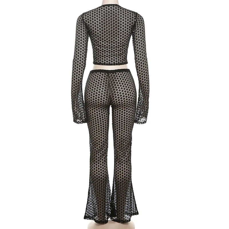 Sexy Mesh Lace Two Piece Pant Set Women Summer Spring Tracksuits Elegant Luxury Outfits Club Wear 2 Piece Pant Sets Outfits