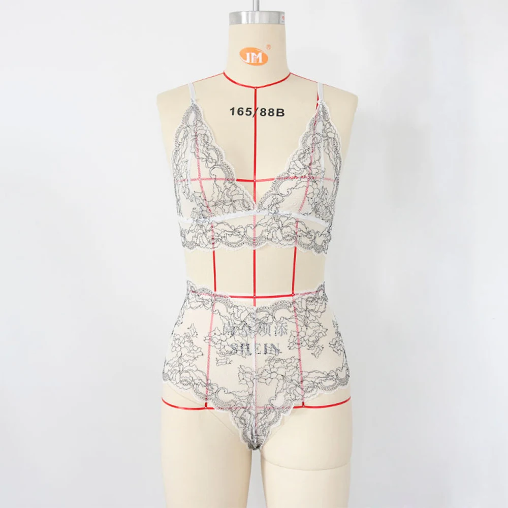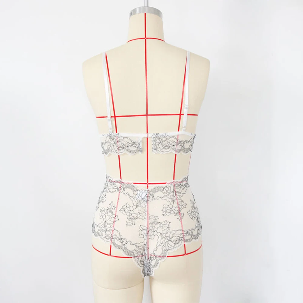 Women's Daily Sexy Bikini Sheer Breathable Lingerie Lace Tulle Netting Underwear See Through Elastic Nightwear Briefs Bra Sets